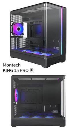 Montech KING 15 PRO 黑 卡43.5/U高18.7/傾斜風扇基座/全景曲面玻璃/背插/M-ATX| 尺寸:45*24.5*42.3 | | 支援水冷:360/280/240/120 | | 硬碟空間:3.5*2 or 2.5*2 | | 內附風扇:12*3(下)A.RGB/12*1(後)A.RGB | | 風扇支援:12*3 or 14*2(上/下)/12/14*1(後) | | 【內含控制器】 | | 前I/O:U3*2+TYPE-C*1 | | 含稅價: NT2790 ◆開箱討論 |