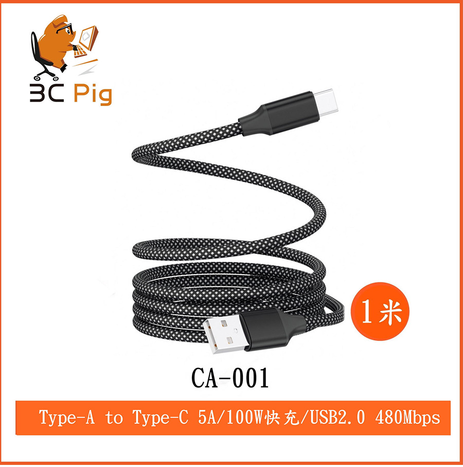 【預】3C Pig【CA-001】Type-A to C 磁吸式 / 100W充電線 / 黑 / 1M $249>蝦皮商城>官網