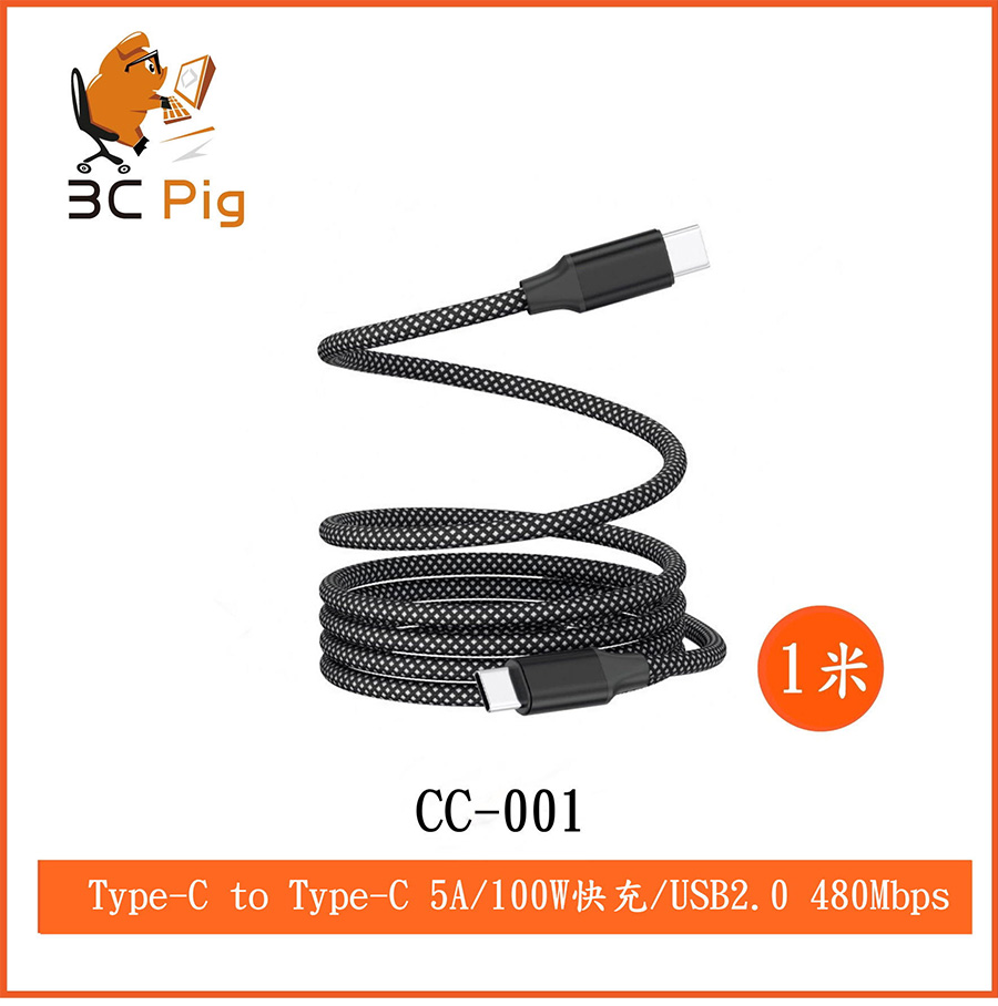 【預】3C Pig【CC-001】Type-C to C 磁吸式 / 100W充電線 / 黑 / 1M$249>蝦皮商城>官網