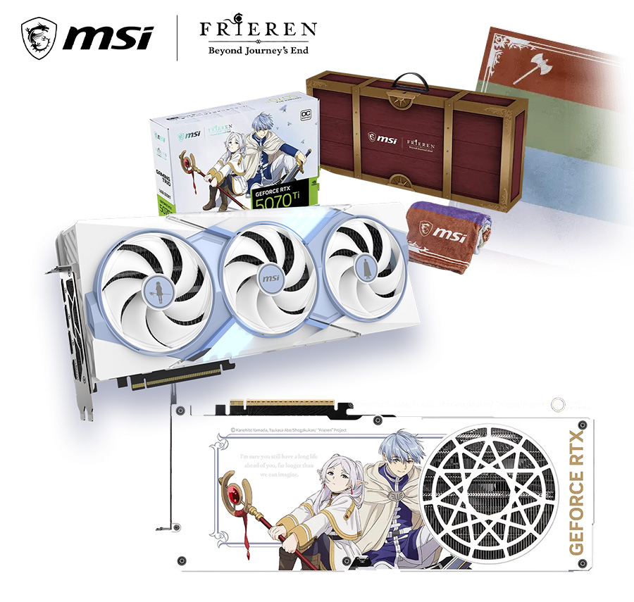 View Larger Image MSI RTX5070Ti 16G FRIEREN EDITION OC《葬送的芙莉蓮》顯示卡sasa2026-03-25T07:05:20+08:00 Project Description 微星 RTX5070Ti 16G FRIEREN EDITION OC《葬送的芙莉蓮》獨家聯名版~限量推出 !$35990>蝦皮商城>官網 (Visited 98 times)