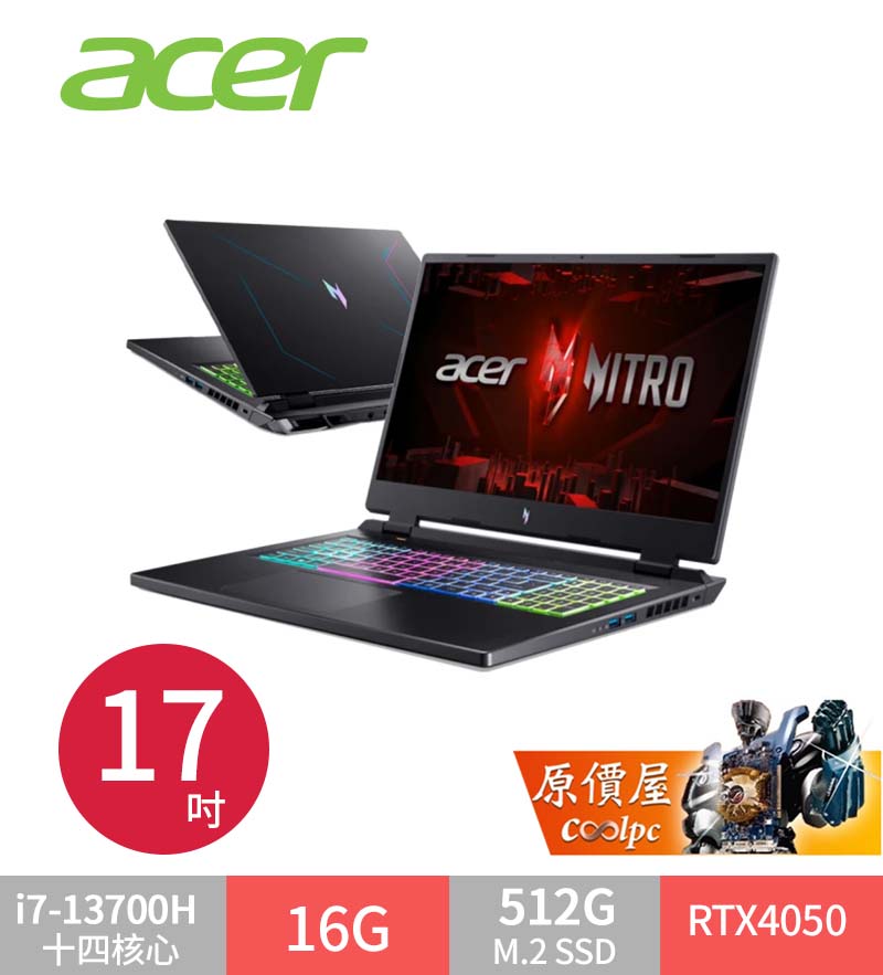 Acer AN17-51-78WP〈黑〉i7-13700H/16G/512G/RTX4050-6G【165Hz】~New~ $45900【蝦皮商城】