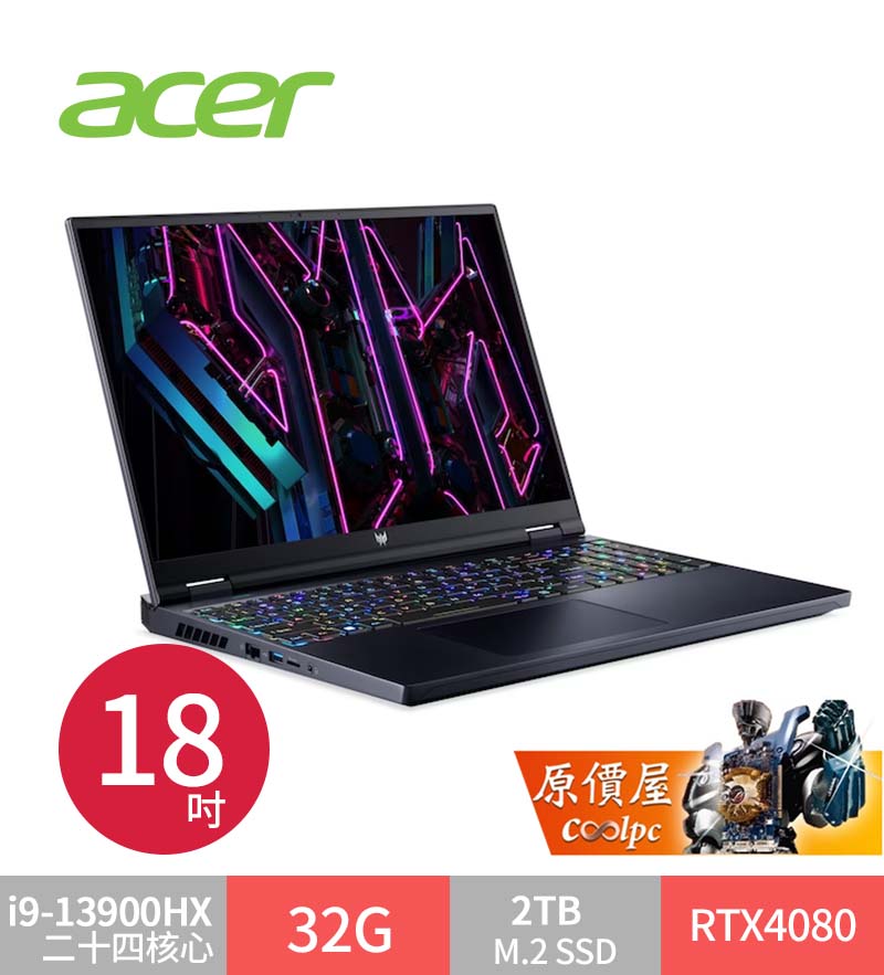 Acer PH18-71-91CF〈黑〉i9-13900HX/32G/2TB/RTX4080-12G【240Hz】$108900