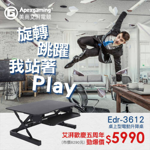 旋轉跳躍我站著PLAY! Apexgaming 歡慶五周年 EDR-3612升降桌居家勁爆價!