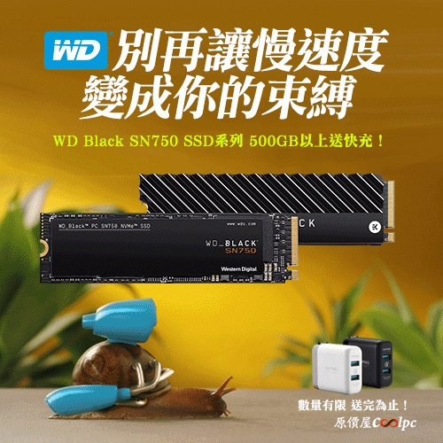 別再讓慢速度變成你的束縛,WD Black SN750 SSD系列 500GB以上送快充!