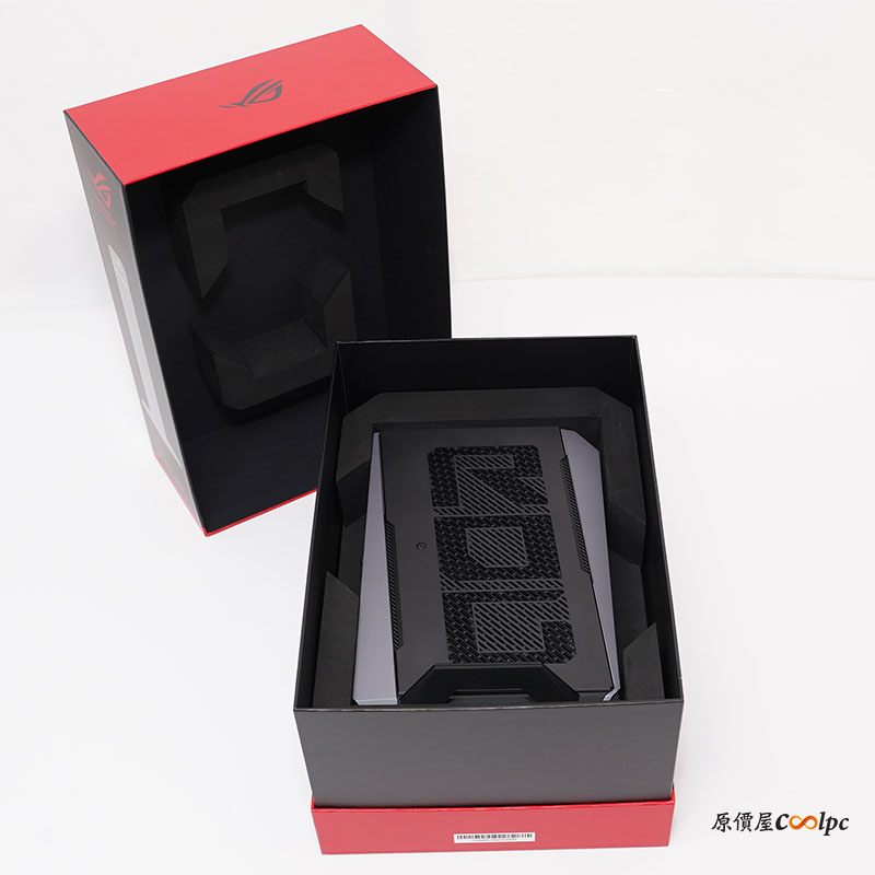 打開就能看到內部採用厚實的橡膠緩衝包材保護著 ROG GR70 小主機。