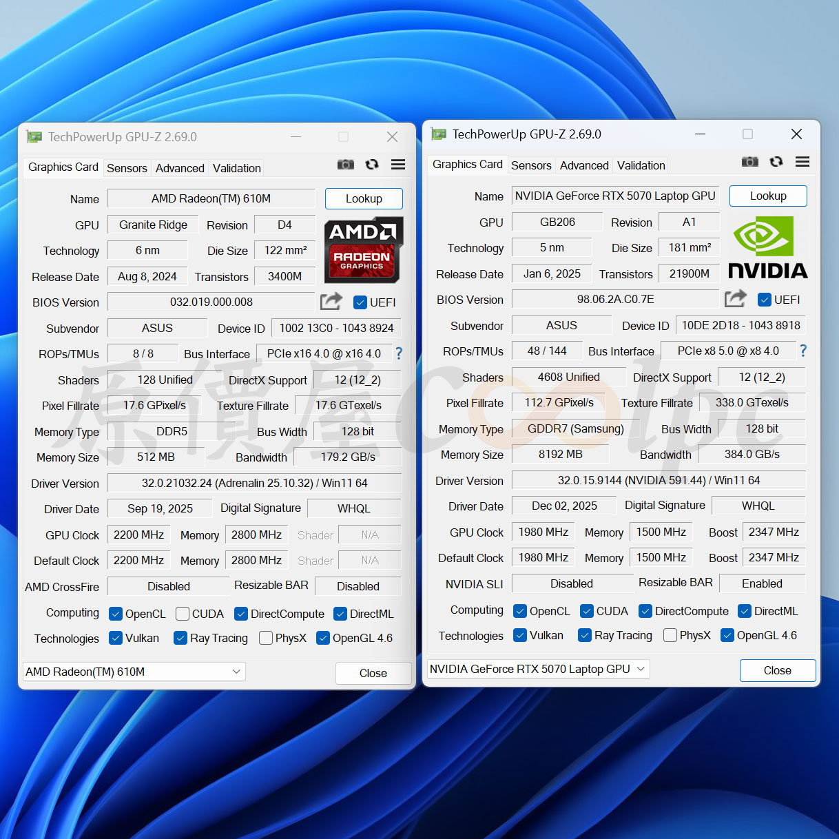 GPU-Z 內顯 & 獨立顯卡資訊。
