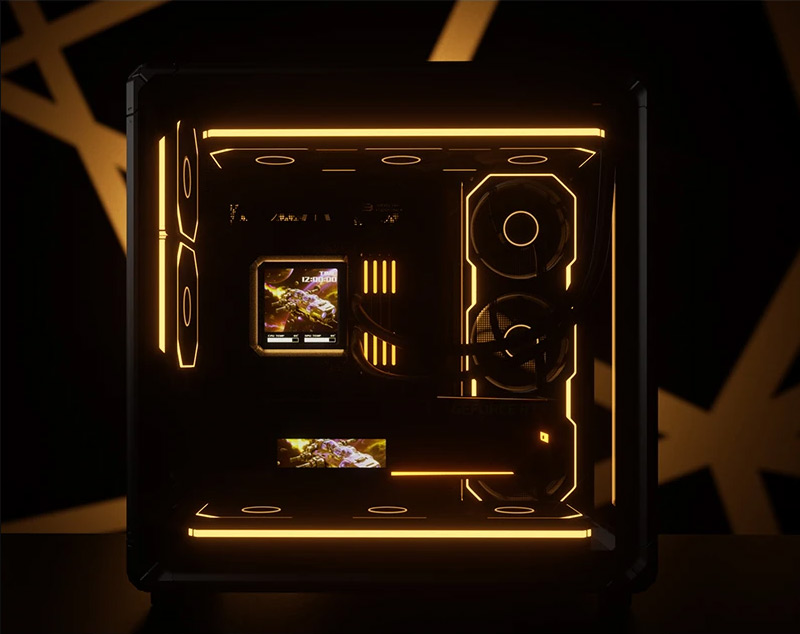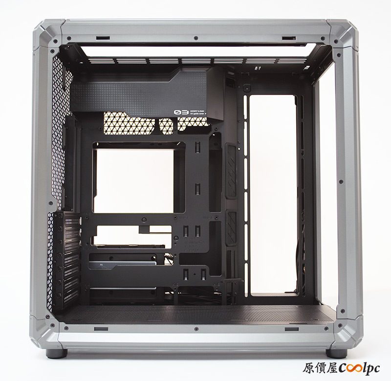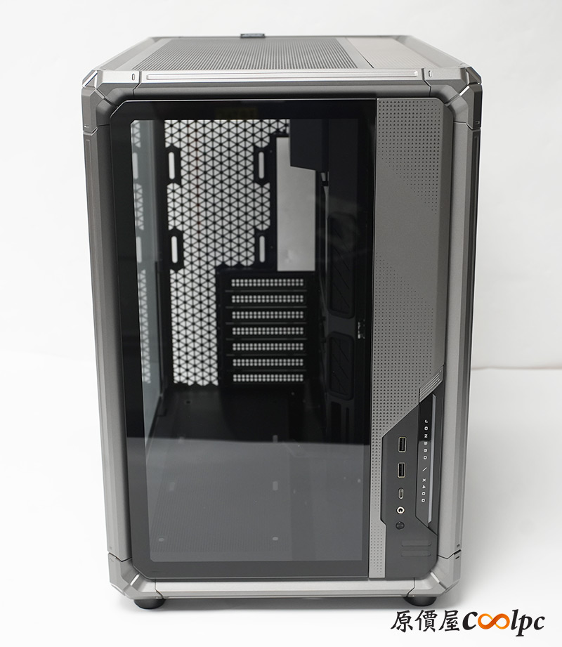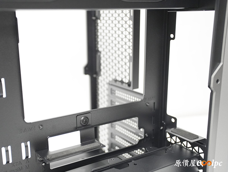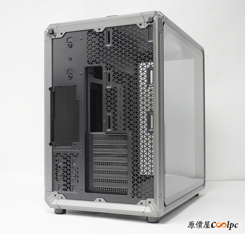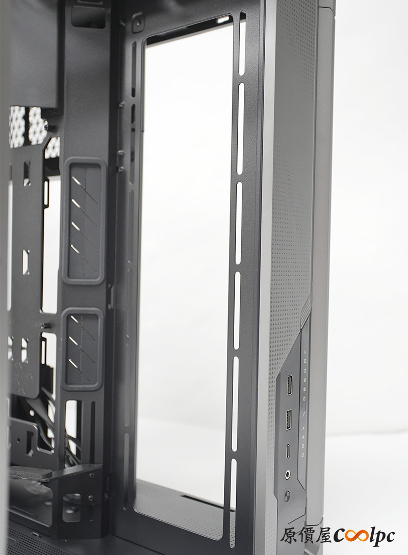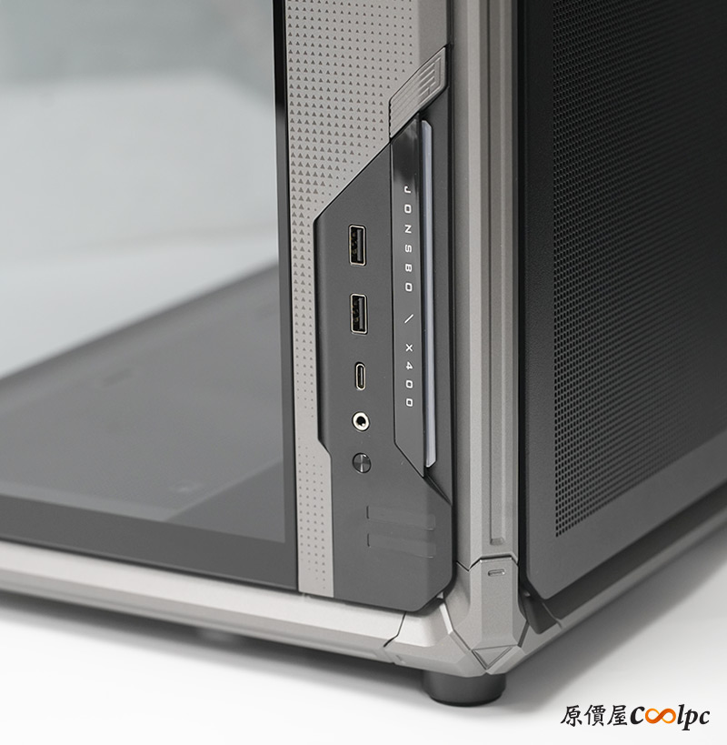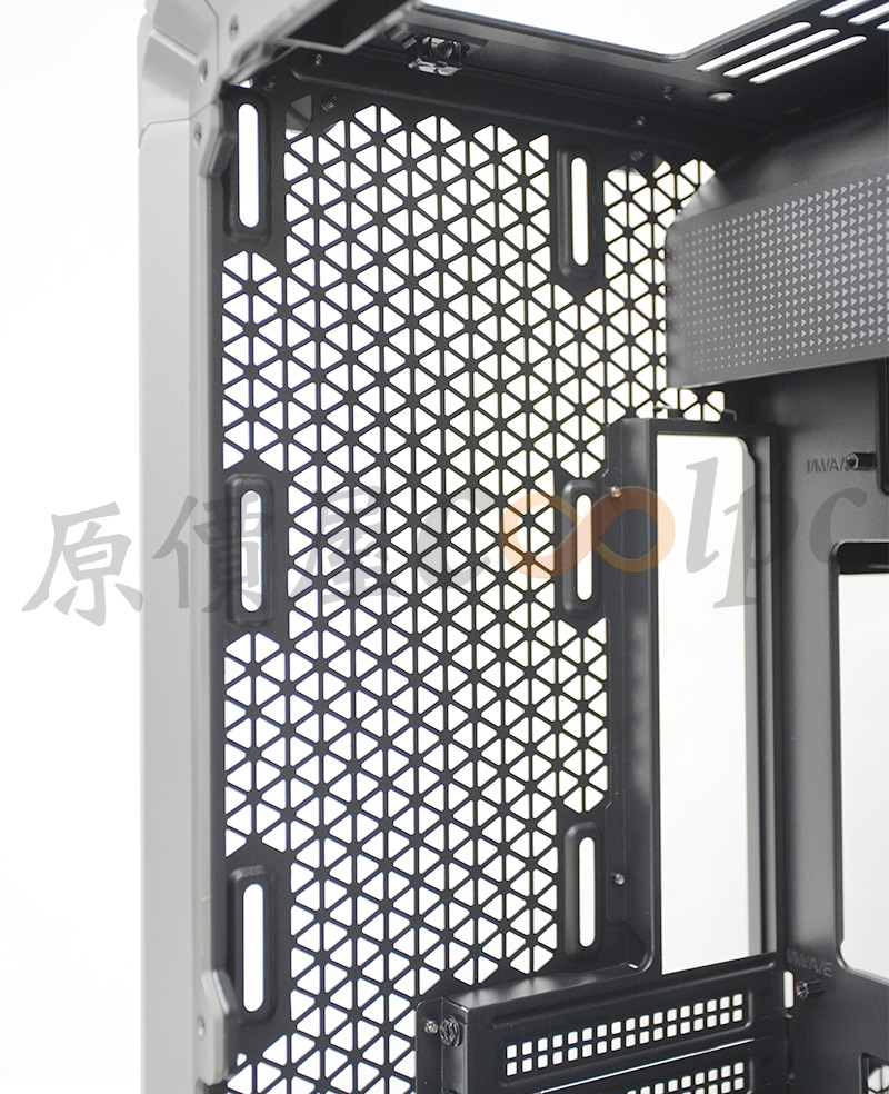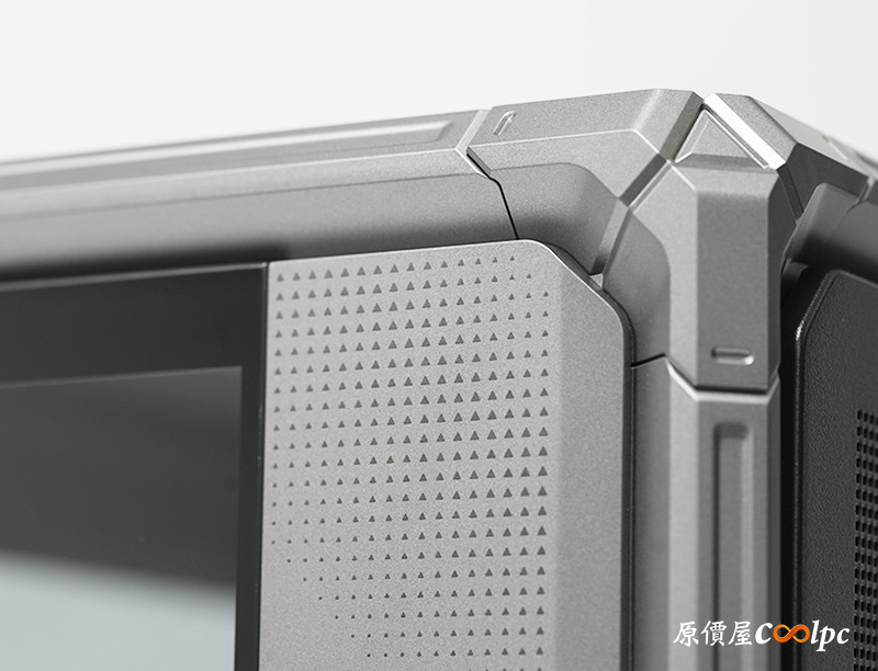 左側整面的強化玻璃能完整看透內部,右側則是採用透氣網孔面板,面積也是快要做到全覆蓋。