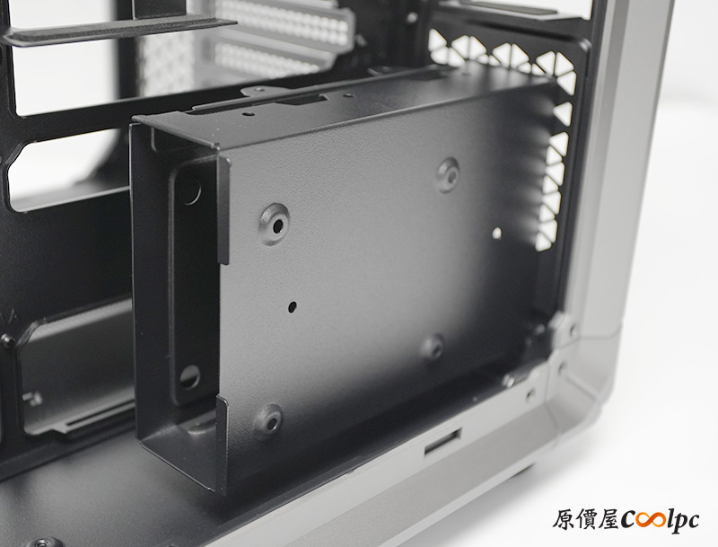 中間是電源供應器安裝位置,長度限制180mm,已經能容納大多數的電源款式,而且前面也還有空間做線材管理,電源也能透過右側板的開孔直接獲得新鮮空氣,就連電源散熱都有兼顧。