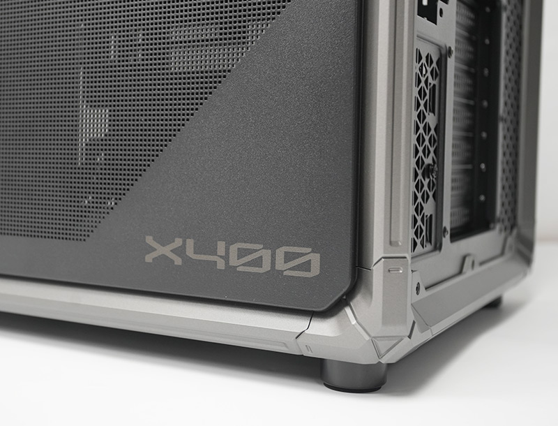 後方左上角與右上角各有一個按鈕,只要按下側板便會彈開,X400的側板都是免螺絲快拆設計喔。