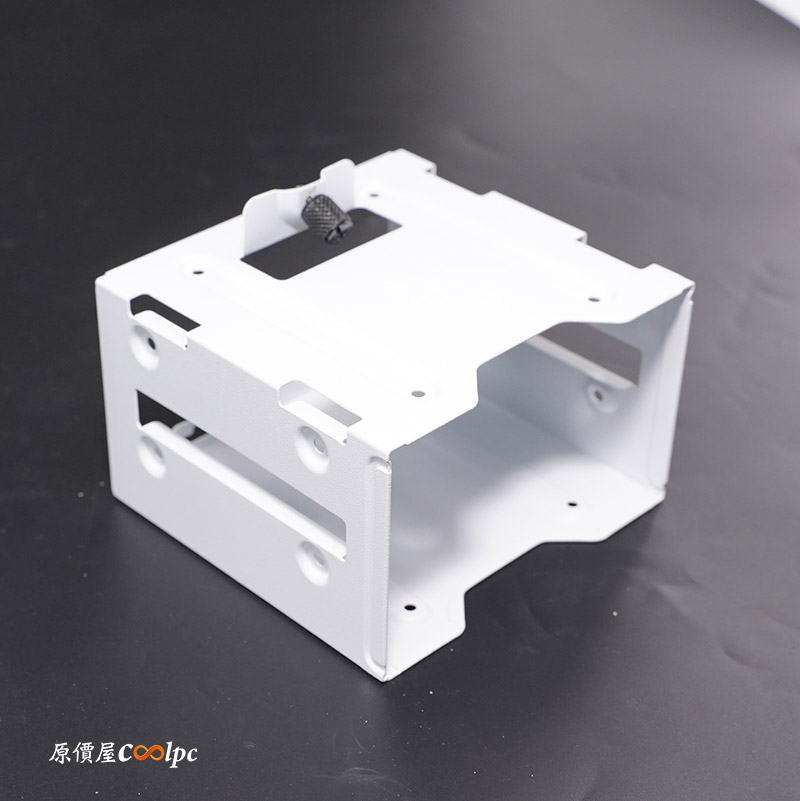 雙艙設計,硬碟和電源供應器都在後方,會讓整體看起來更為乾淨,左側硬碟架專為 2.5 吋硬碟設計,共支援四顆;電源供應器下方艙位可安裝 2 顆 3.5 吋硬碟,或轉換為 2 顆 2.5 吋硬碟。