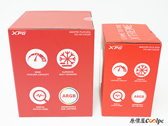 先來看一下XPG MAESTRO PLUS 62DA與42SA的主要差異,最明顯當然是62DA擁有雙塔雙扇,散熱鰭片面積與數位顯示面板都更大,還有六支直觸式熱管散熱。而42SA則是單塔單風扇,散熱面積與數位面板相對小,熱導管也減少為四支,其他地方兩者設計大致是相同的。