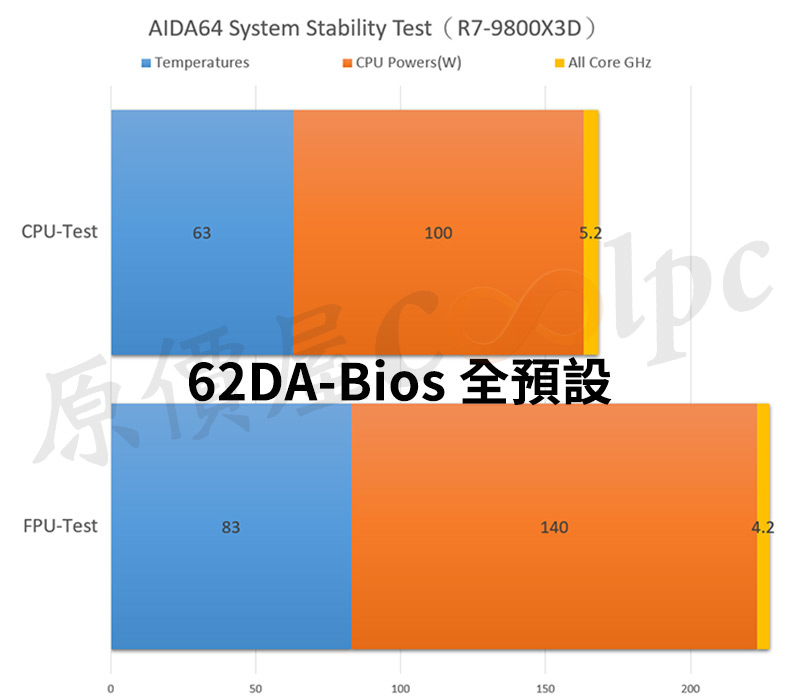 最後針對XPG MAESTRO PLUS 62DA進行滿載燒機測試,測試平台採用 AMD Ryzen 7 9800X3D 處理器,溫度測試使用 AIDA64 System Stability 進行 CPU/FPU 壓力測試。