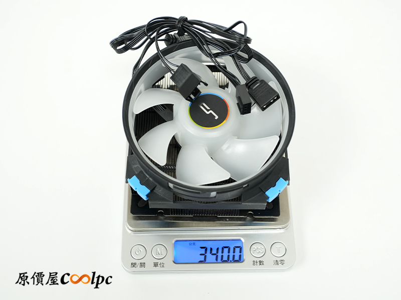 重量方面,一般版單本體為 240 公克,加上風扇後則來到 340 公克。雖然比全銅版輕不少,但手感依然紮實,重量甚至逼近一些入門級的一般塔型散熱器。