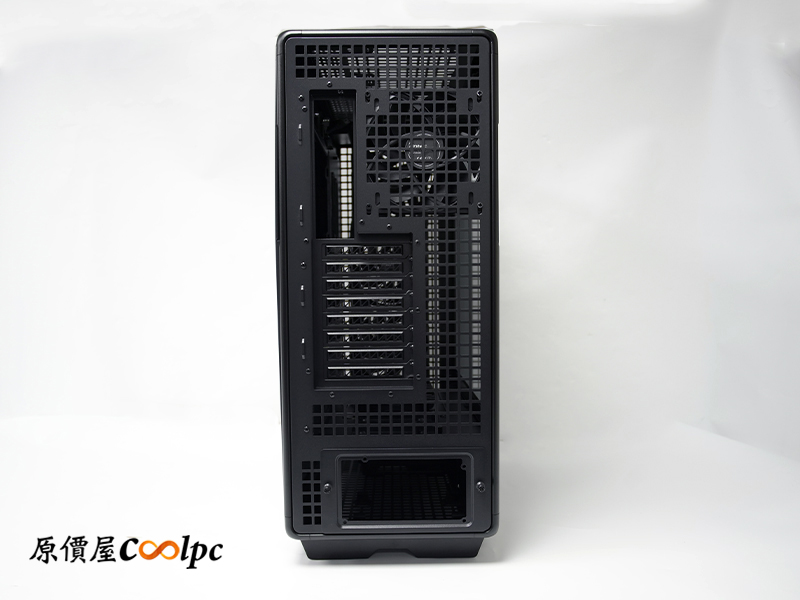 側面的網孔面板同樣支援免工具拆卸,下方還預先安裝了兩顆 120mm 的反向風扇,直接對準顯示卡區域供流,對於壓制高端顯卡的廢熱非常有幫助。