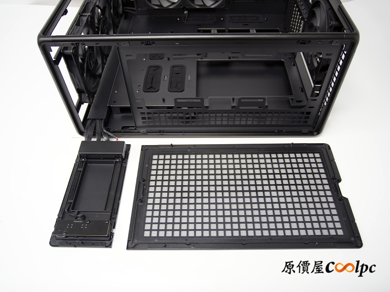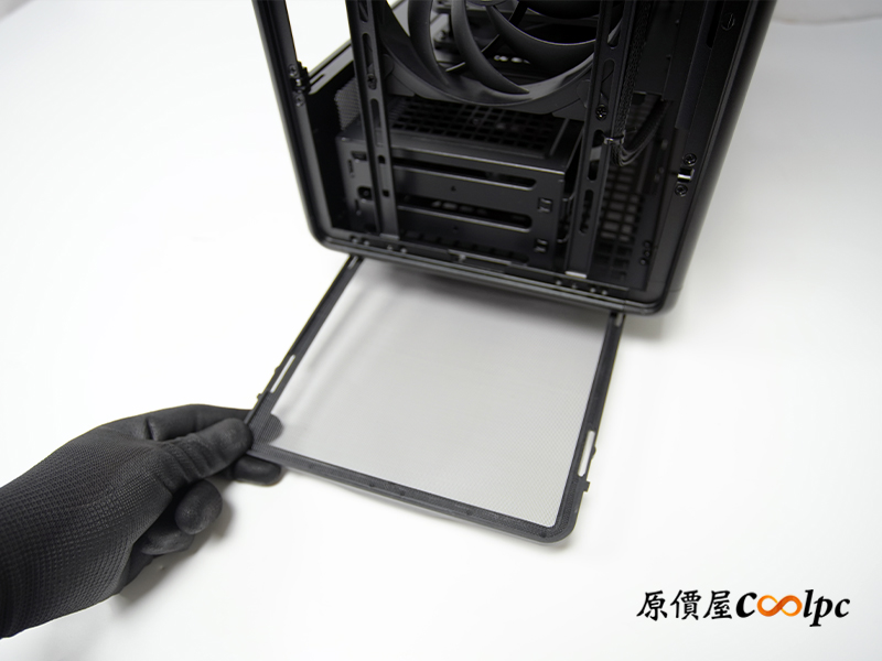 正面預裝了三顆 140mm 的大風扇,進氣量相當驚人。面板採用方便的卡榫設計,不需要工具就能直接拆卸,後續保養清潔灰塵相當方便。
