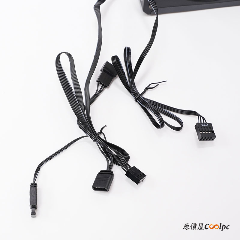 冷排的線材有 4PIN公母分接和 ARGB 公母分接線,另外一條是風扇螢幕傳輸要接到主機板 USB 2.0 插孔。