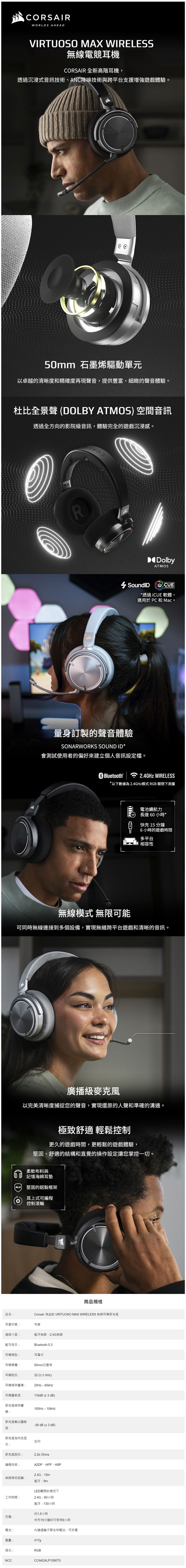 準備好進入聲音制霸的世界了嗎?來自 CORSAIR、玩家最熟知的海盜船品牌!這波耳機優惠直接把沉浸感跟 CP 值一次拉滿!不只耳朵爽,荷包也笑了~另外還加碼讓你有機會抽好禮,這種好康不跟上真的會後悔啦。這回的活動品項從入門到旗艦,通通幫你準備好了!擁有輕量設計+舒適耳罩的「Void Wireless V2(黑/白)」,原價 $2980,現在 $2690,穩定的無線連線,讓日常遊戲、語音都順暢!再來就是音場再升級,細節更清晰的「Void Wireless V2 Max」,原價 $4190,現在也只要 $3690,適合想從入門往上升級的玩家朋友。而支援 Dolby Atmos、擁有廣播級麥克風的「HS80 Max(消光灰/雪貂白)」,現在竟然也從原價 $5590 直接降到 $3990!最後… 具備高級鋁合金質感+Hi-Fi 音質,擁有旗艦級表現,音樂、遊戲的雙棲王者「Virtuoso Max Wireless(黑/銀)」,也有原價 $10980 降到 $8990 的優惠表現!不論你是 FPS 拼槍定位派,還是 RPG 劇情沉浸派,這波絕對都有你的命定耳機可選~尤其「HS80 Max」直接砍到 3000 多,已經是看到就該結帳的等級了,更別說「Virtuoso Max」這種旗艦款也跟著降,完全是在逼玩家升級嘛。當然啦!這麼好康的降價數量絕對有限,所以各位玩家真的不要錯過了耶!