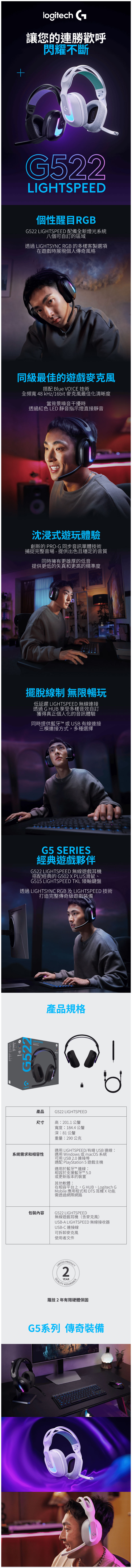 這次的活動品項真的都是一時之選!該好好的向各位介紹了~首先登場的是高CP值的人氣王「G325 Lightspeed 雙模無線遊戲耳機」,包含了暗夜黑、極地白、丁香紫三色齊發!通通都只要 $2690。主打 Lightspeed 2.4GHz 低延遲無線與藍牙雙模切換,電腦、手機一鍵搞定。輕量化設計搭配舒適耳罩,讓玩家長時間配戴也不感壓頭!音質清晰、定位明確,腳步聲、技能音效層次分明,日常娛樂到競技對戰都能穩穩發揮~如果你是想要入門無線、又想兼顧顏值與實用,那 G325 就是甜甜價首選!再來是進階玩家必看的「G522 Lightspeed 無線三模耳機」,包含了神秘黑與極光白兩色,$4990 的價格擁有三模連線技術,Lightspeed、藍牙與有線模式自由切換,主機、PC、行動裝置全都包。強化單體帶來更寬廣的音場與細節還原,不論是 FPS 聽位移、MOBA 抓節奏,或沉浸式單機劇情,都能感受到聲音層層堆疊的臨場感。搭配清晰收音麥克風與穩定連線技術,團隊溝通零卡頓,戰術指令清楚到位!而最後的壓軸王牌則是旗艦級「G Pro X 2 Lightspeed 無線電競耳機」,原價 $7990,現在活動價直接下殺 $5490!還有黑、白、桃紅三色可選。專為競技打造的高階單體與精準調校,帶來更細膩的高頻與紮實低頻,定位感銳利、解析度拉滿~搭配專業等級麥克風與穩定的 Lightspeed 無線技術,從練習賽到正式上場都能維持高水準輸出。不管你是想衝分、開台實況,或追求更純淨的聲音表現,這支都是那種一戴上就回不去的等級啊!