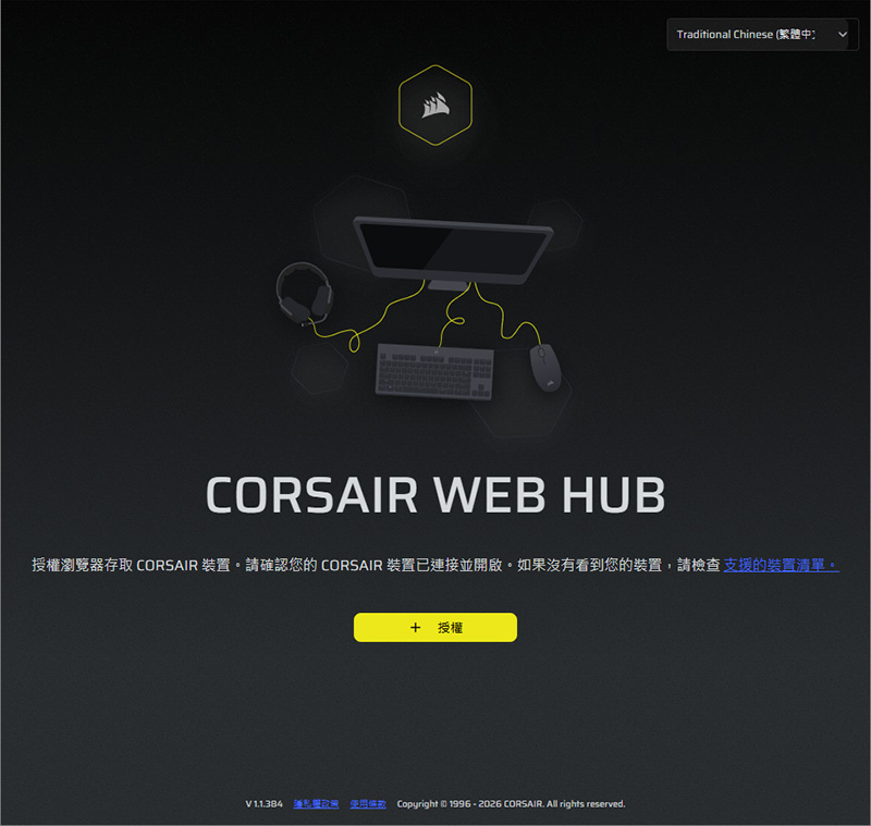 除了強大的 iCUE,現在海盜船還推出了網頁版的 CORSAIR Web Hub,不用安裝臃腫的軟體就能自訂功能,完全跟上現在的輕量化趨勢!它功能非常全面,連更新韌體都沒問題,基本功能幾乎能完美取代原生軟體。唯一的遺憾是,如果想設定側邊那 6 顆 G 鍵,還是得載回 iCUE 才行。雖然稍微可惜了一點,但對大多數操作來說已經方便太多了。