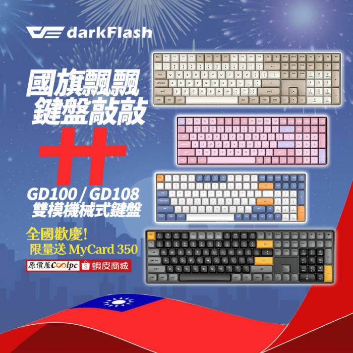 雙十國旗飄飄,大飛鍵盤敲敲!darkFlash GD100/108 雙模機械式鍵盤國慶送 MyCard 350!