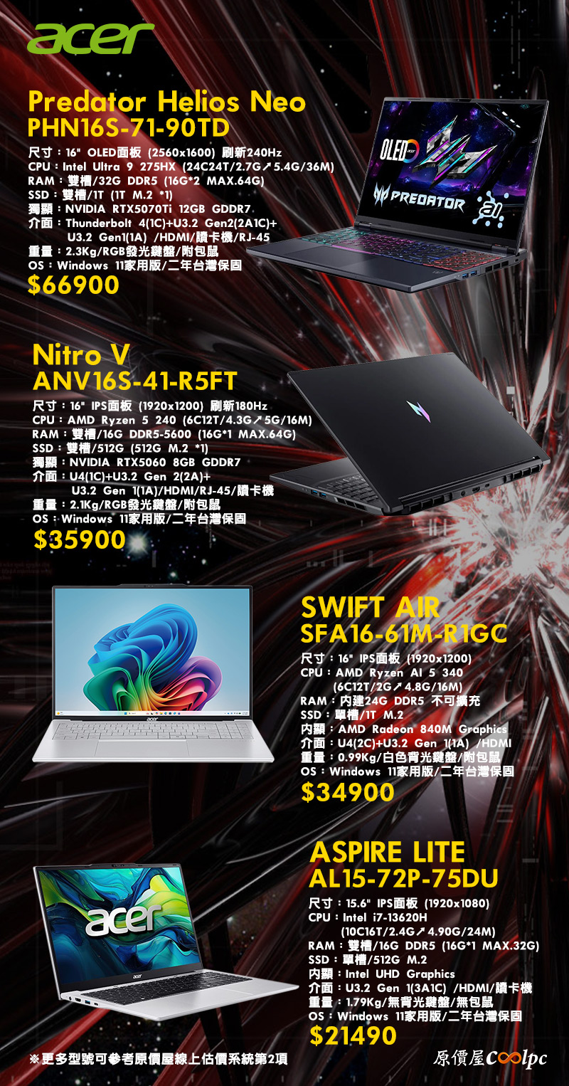 ACER全系列筆電
