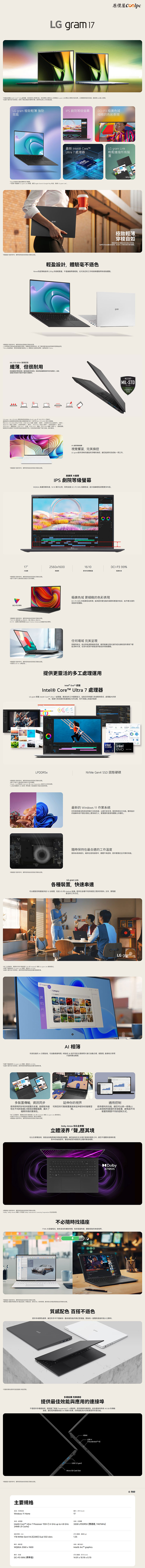 LG Gram Ultra 7-155H/32G/1T/17吋 灰 17Z90S-G.AD79C2 $39111