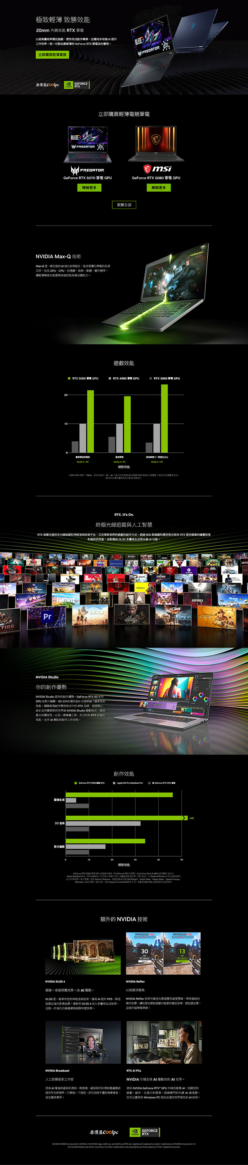 極致輕薄,AI 致勝效能!NVIDIA GeForce RTX 50 系列筆電。