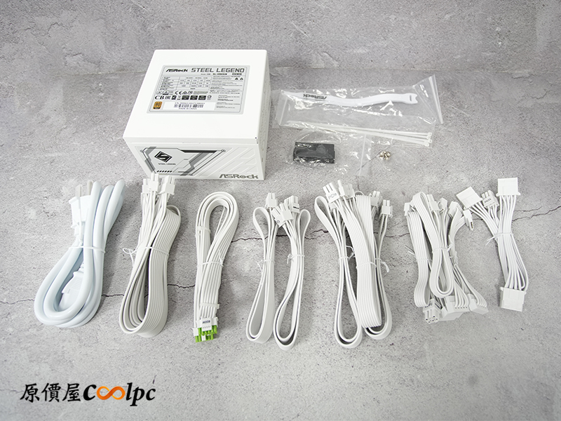 接下來一起簡單看看 白色版本的 ASRock SL-1000G!除了前面展示的包裝換成白色風格外,電源本體當然也是純白配色,連線材也統統換成白色。有趣的是,就連電源線、魔鬼氈、束帶等配件也都跟著換色,如果你是白色控,這款絕對不能錯過!