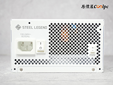 電源散熱網孔中央配有金屬 Steel Legend 標誌,下方搭載 135mm FDB 液壓軸承風扇,兼顧散熱效率與外觀辨識度。