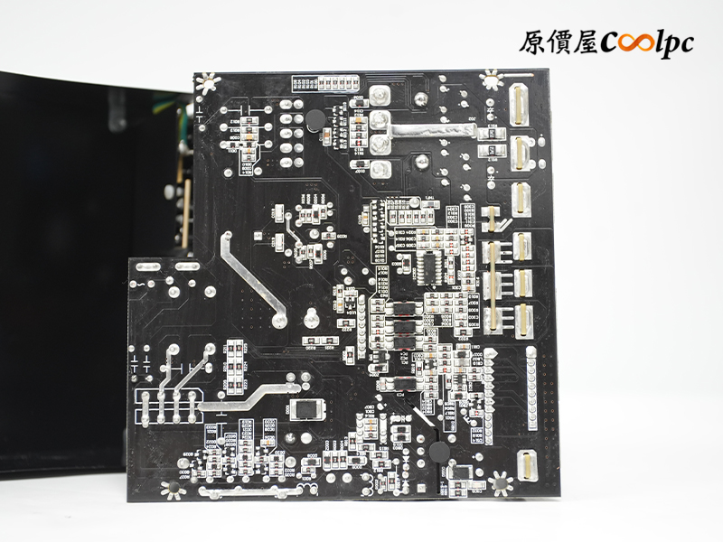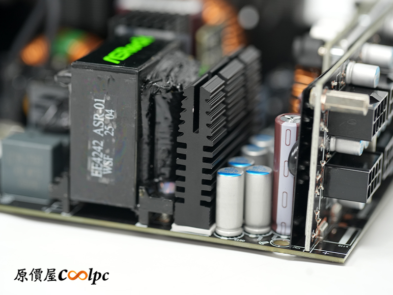(點小圖放大)拆開這顆 ASRock Steel Legend 1000W 金牌電源,裡面比想像中精緻很多,內部設計乾淨、布局合理,用料也相當實在。所有主要電容都是日本品牌的 Chemi-Con 和 Rubycon,品質可靠又耐熱。主電容只有 680µF,雖然看起來有點小,但因為 ATX 3.1 新規格放寬了保持時間要求,所以這樣的設計其實沒問題。整體架構採用 Half-Bridge + LLC 諧振設計,能提高轉換效率、減少損耗,搭配 DC-DC 模組來穩定輸出 5V 和 3.3V 電壓,這也是目前高效率電源常見的配置。內部散熱也規劃得很好,各區都有留空間讓風流通暢,主要發熱區都有鋁製散熱片幫忙降溫,搭配 135mm 油壓軸承風扇設計,葉片像刀鋒一樣有條紋造型,風壓強又安靜,還支援「混合靜音模式」,在低負載時會完全停轉,維持靜音環境。