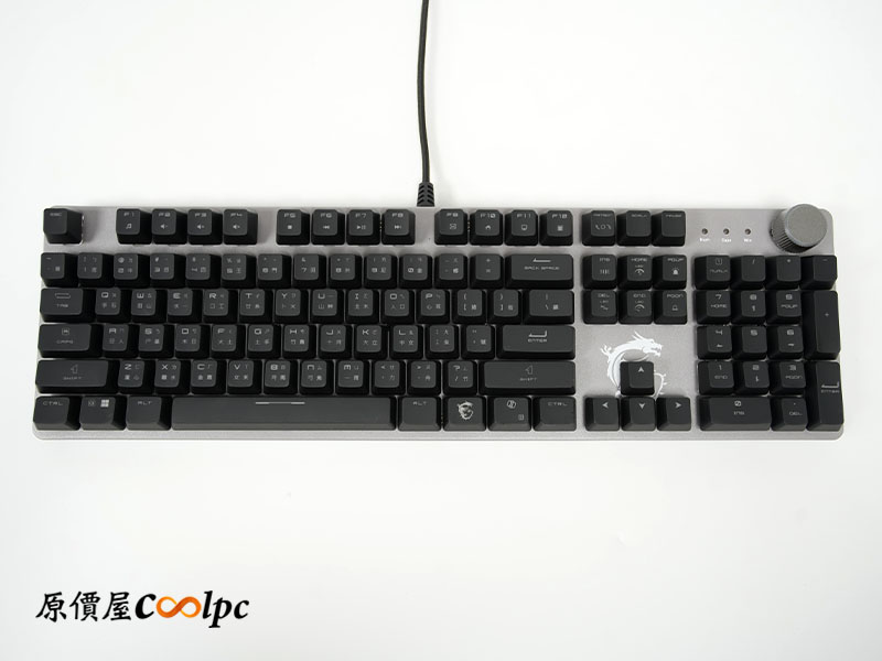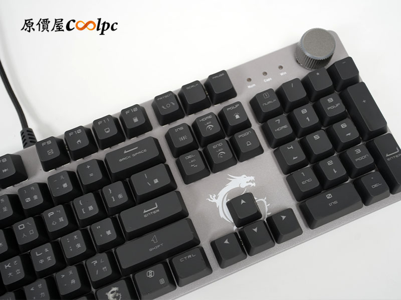 上蓋透過磁吸結構固定在鍵盤本體上,裝上的時候就是典型的傳統機械鍵盤外觀,紮實、穩重又有份量;但一拆下來立刻變身成悬浮键帽風格,原本 MSI LOGO 的位置還會換成微星專屬的龍紋圖騰,這設計真巧妙!