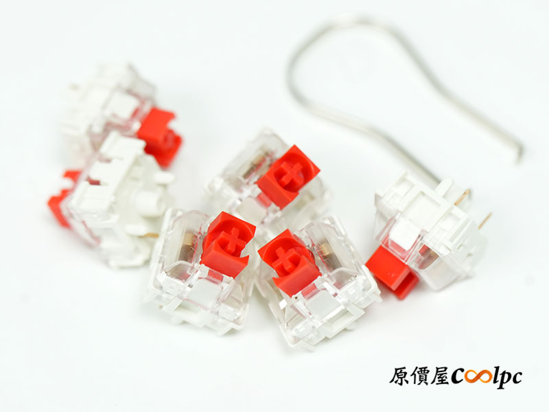 軸體看起來並不是 Cherry、TTC、Gateron 這類常見大牌,推測是微星自家客製的紅軸,採用 5-pin 設計,和市面上大多數鍵盤都能相容。手感部分小編體感大約在 45g 左右,比一般紅軸更 Q 彈一些,敲起來挺舒服的。