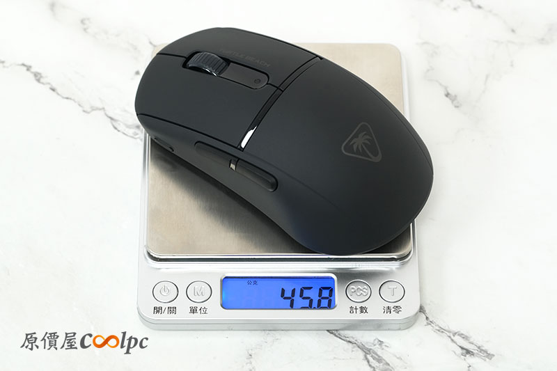 實測重量大約 47g,與官方數據相符,屬於目前主流電競滑鼠中的「超輕量級」,移動起來非常輕快。