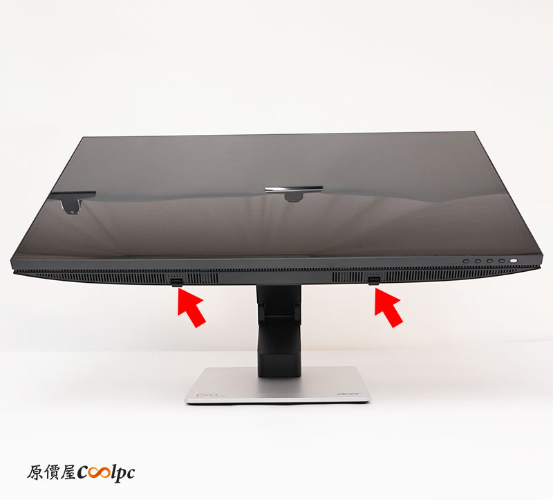 螢幕底部箭頭位置設有兩塊橡膠墊,提供支撐點,防止放置於桌面時滑動。