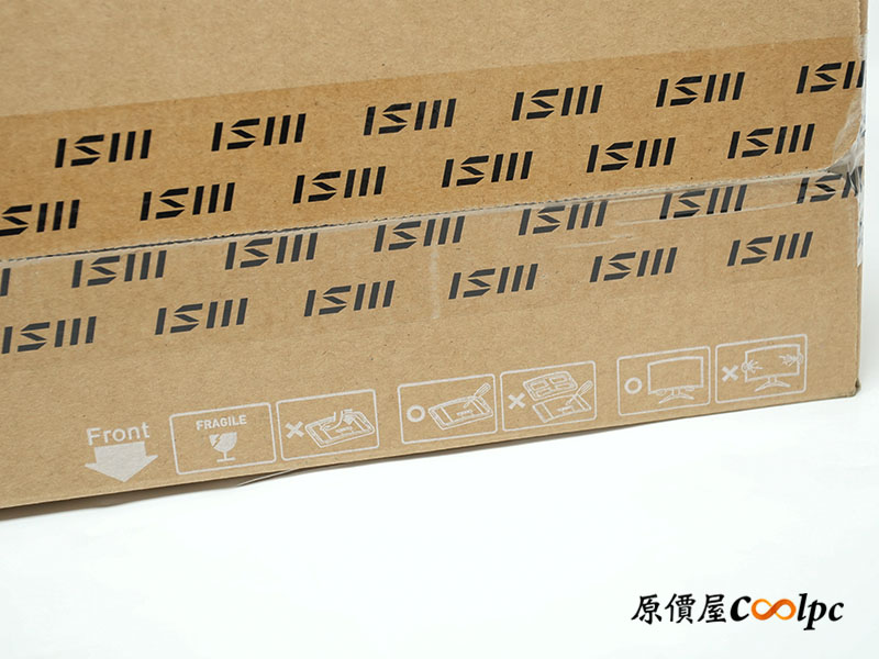 紙箱上方印有一排簡易的拆封教學,「Front」箭頭所指的方向就是螢幕正面的朝向,各位在開箱前可以先確認一下。