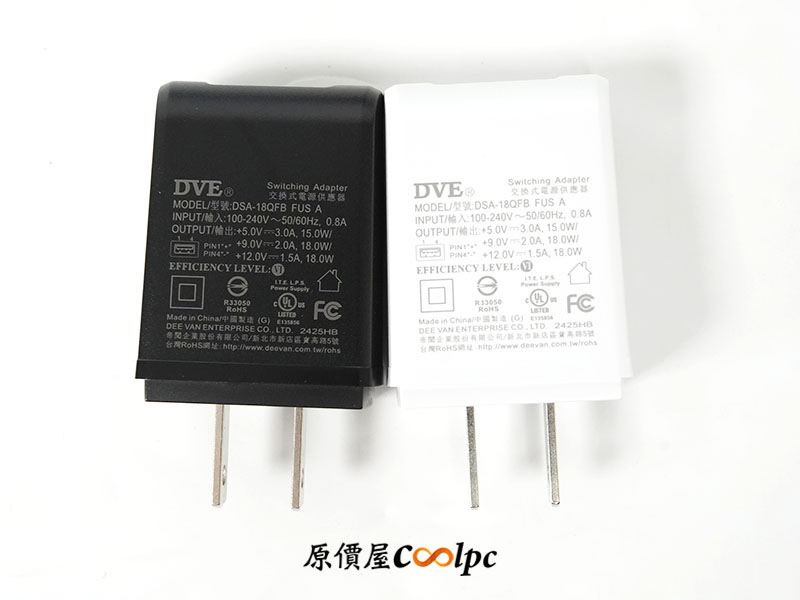 (點小圖放大)變壓器型號為帝聞 DSA-18QFB,支援 100-240V 0.8A 輸入,輸出為 5V 3A(15W) / 9V 2A(18W) / 12V 1.5A(18W),使用 USB-A to C 電源線連接。由於變壓器身形設計的相當嬌小,盡可能的避免排插插孔被犧牲的狀況發生,家裡有小烏龜 + AP + SWITCH 的玩家應該感受很深…