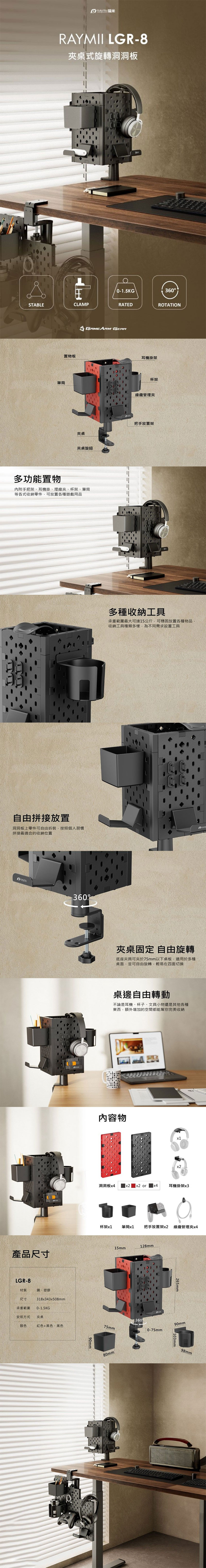 Raymii GameArm LGR-8 旋轉四面洞洞板收納架【全黑色/紅黑色】擇一 !