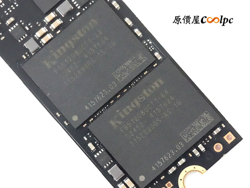 金士頓 FURY Renegade G5 硬碟使用 SMI SM2508 主控晶片,妥妥的台積電 6 奈米工藝!符合 PCIe Gen5 與 NVMe 2.0 標準,工藝的提升也進一步增強散熱溫度表現,DRAM 使用 1 顆 Nanya NT6AN256T32AV-J1(LPDDR4-4267MHz/8Gb)、2 顆 Kingston 嚴選顆粒(3D NAND FLASH TLC)組成 1TB。