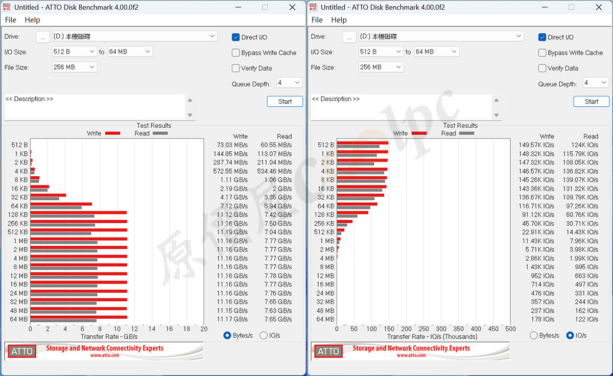 (點圖放大)ATTO Disk Benchmark 測試結果。