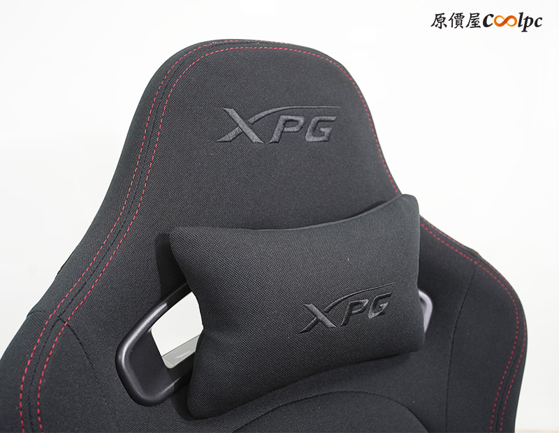 頭部正反面都有XPG LOGO。配備獨立的頭枕輔助頸部支撐,頭枕按壓起來相當有彈性。