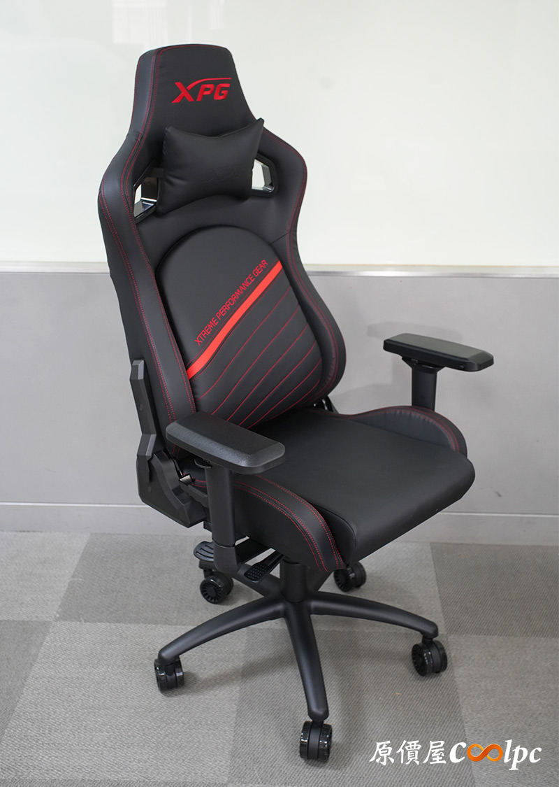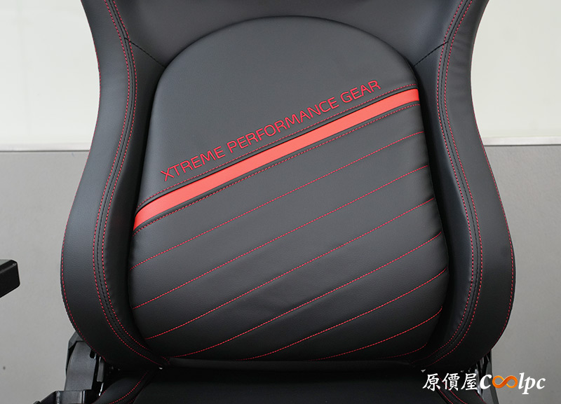 椅背特別凸起貼合脊椎曲線,表面縫上XTREME PERFORMANCE GEAR字樣,還有車縫線與一道紅色皮革做綴飾,讓椅面更添設計感。