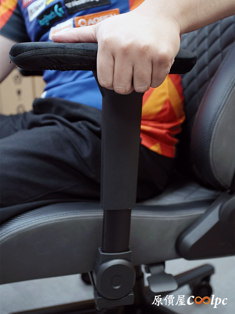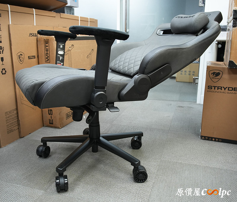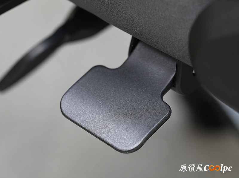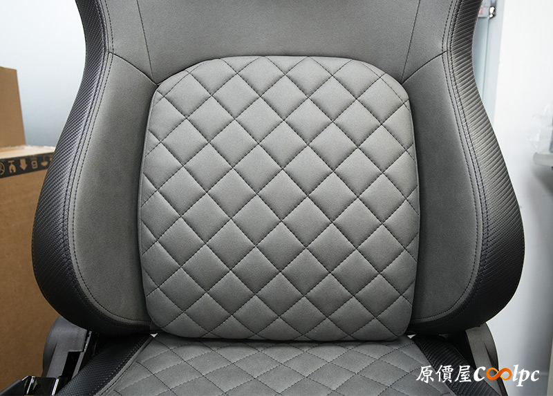 椅背上藏著獨立的腰靠,也就是菱格紋的部分,裡面搭載COUGAR獨特的PushBack支撐系統,支撐位置基本上是無段位調整。這也是小編我最滿意DEFENSOR S JET GRAY F的地方,因為撐下去真的不得了,直接把你的腰頂起來,壓力都跟著被釋放開了。