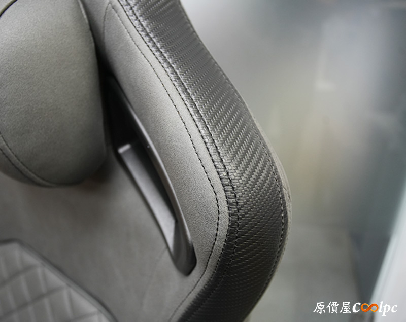 本體登場!必須說DEFENSOR S JET GRAY F這顏色我很喜歡,搭配本身仿賽車椅的設計,整體而言非常有型。椅身具備符合人體工學的曲線,面料使用觸感、耐磨度、透氣度都更好的類皮紋科技布,帶來更貼近真皮的觸感,內部則是高密度成型泡棉提供良好支撐力,再搭配椅子靈活的機構設計將舒適度推上頂峰,接著就讓我們來一一細看。