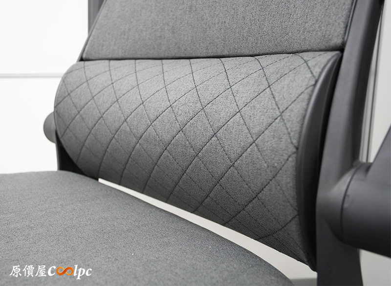 頭枕部分就同時有仿亞麻布和菱格紋縫線,質感先過關了,設計上有人體工學曲線,厚度看來也很出色,能夠給予充足的支撐。上面悄悄縫上COUGAR字樣,設計得十分低調,有助於將使用者的注意力都集中在椅子本身的特色與功能上。