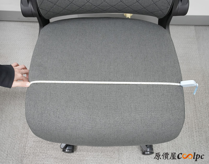 加大人體工學椅座設計,實際丈量寬度接近570mm,坐墊還是彈性與支撐力兼具的多密度泡棉,支持骨盆並釋放下半身壓力,維持健康坐姿。