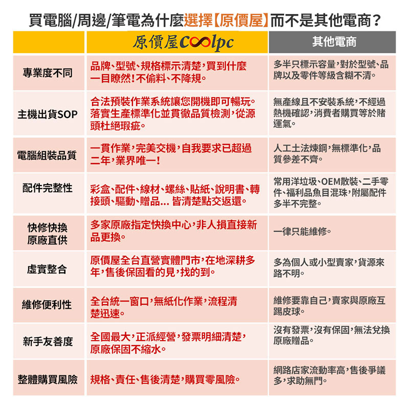 原價屋提供首次免費組裝,不僅嚴謹自我要求組裝過程,交機時一一點交每個環節,疏失自罰 NT$100 作為對自我的要求(詳情);現在更進一步推出免費預載作業系統及驅動!預載 OS 的好處是電腦搬回家開機即用,一律安裝當前最新穩定版本(目前 25H2),安裝過程也順道測試硬體運作,將新品故障率降至最低。一直以來,原價屋推出的每一項服務都是業界首創,安心交機自我要求至今仍是業界唯一,每一項措施都是為了讓您更放心,我們實際在做事而非只靠吹噓!