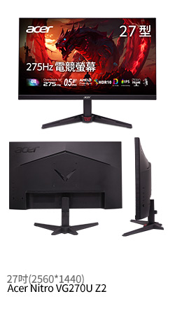 【主機搭購】Acer Nitro XV270U F3〈2H1P/IPS/320Hz/含喇叭/HDR10/HDMI 2.1〉320Hz高速更新率