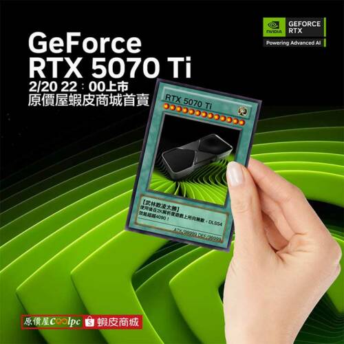 【預告】GeForce RTX 5070 Ti 於2月20日22︰00原價屋蝦皮商城首賣!