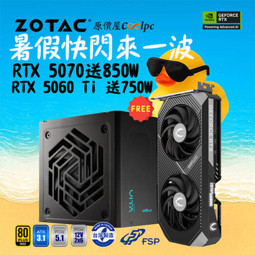 ZOTAC暑假快閃來一波!索泰指定RTX5070/5060Ti 8GB送850W/750W全漢電源!