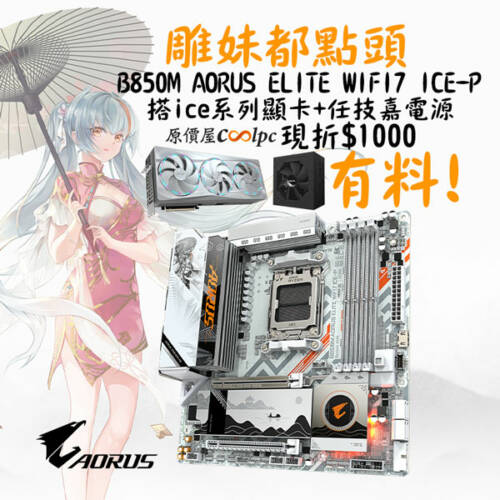 雕妹都點頭,有料!技嘉 B850M AORUS ELITE WIFI7 ICE-P 主機板,搭 ICE 系列顯卡+任一技嘉電源現省一千!